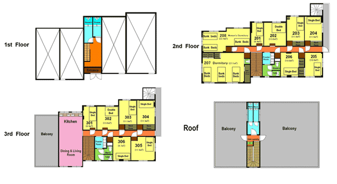 Insurance : 600yen per month (private room), 200yen per month (dormitory)